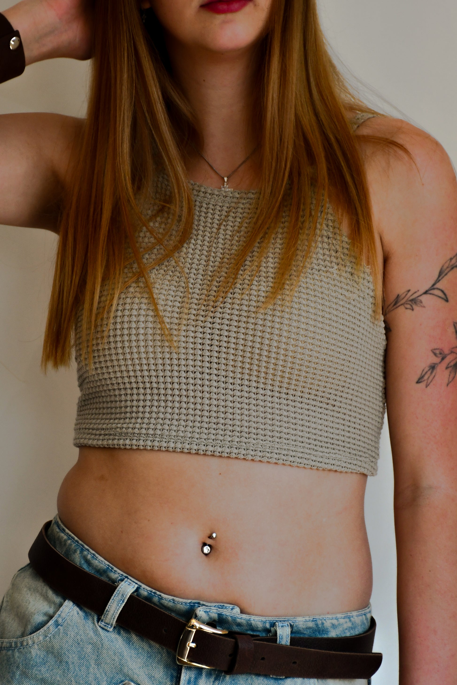 Top Dara: top croshet con tiras atado atrás en natural - Talle único