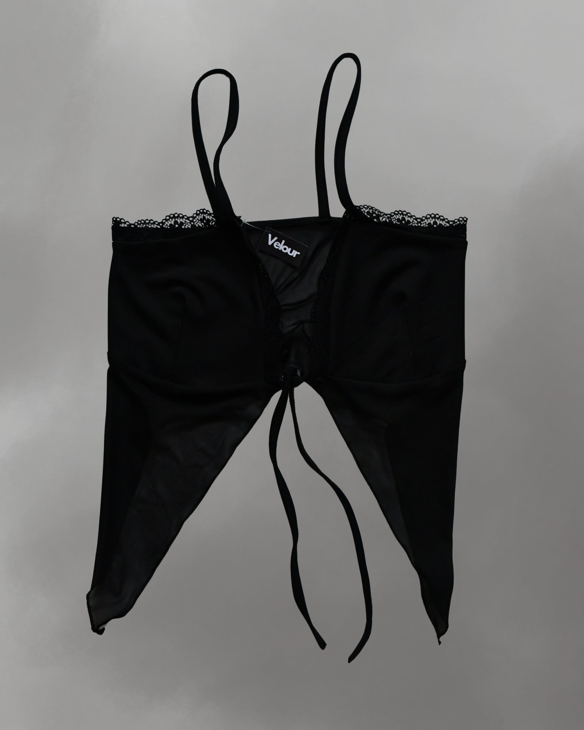 Top Florvane: top mariposa tul encaje negro - Talle único