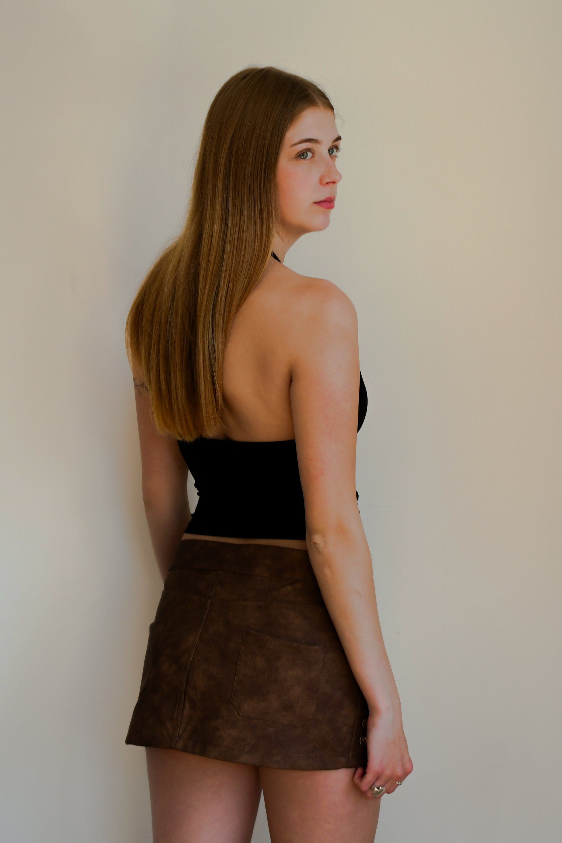 Top Ushnor: top espalda semidescubierto atado negro brillante - Talle único