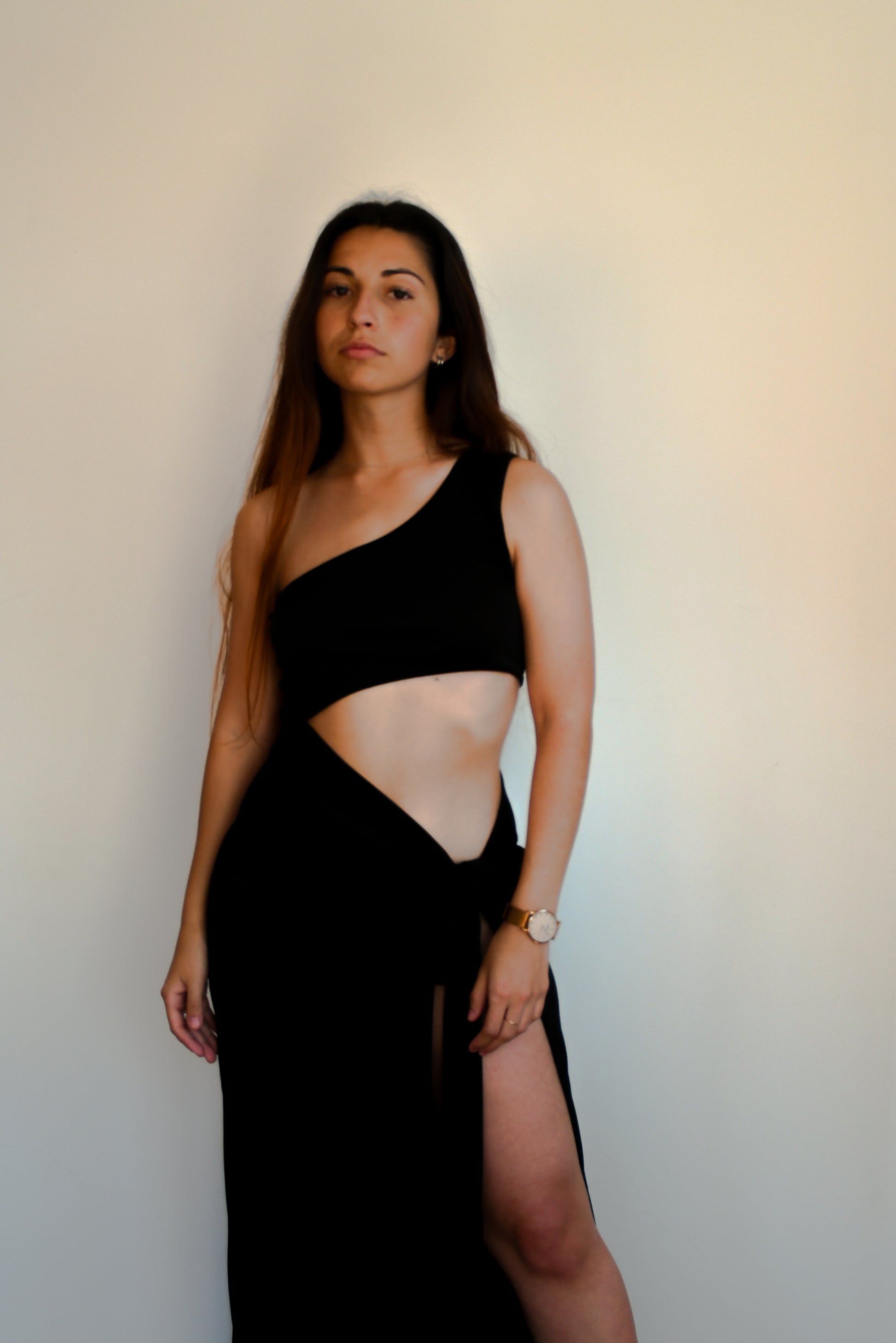 Vestido Yveloria: vestido largo atado gris y negro - Talle único